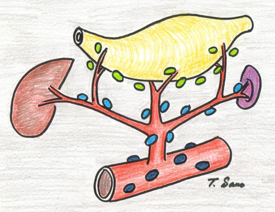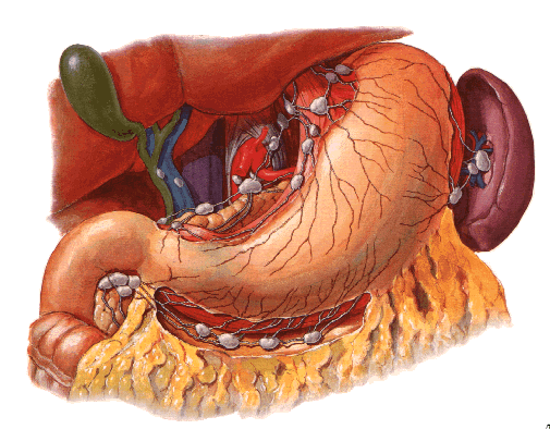 O sistema linfático está presente em todos os órgãos. É a via que as células usam para eliminar todas as substâncias que não precisam, para excretar os resíduos de metabolismo celular. Todo órgão intra-abdominal apresenta uma drenagem linfática. Na medida em que o tumor cresce e invade os tecidos em volta, pode disseminar células neoplásicas pelos canalículos linfáticos que ao percorrer os vasos linfáticos, se alojam em linfonodos regionais.
